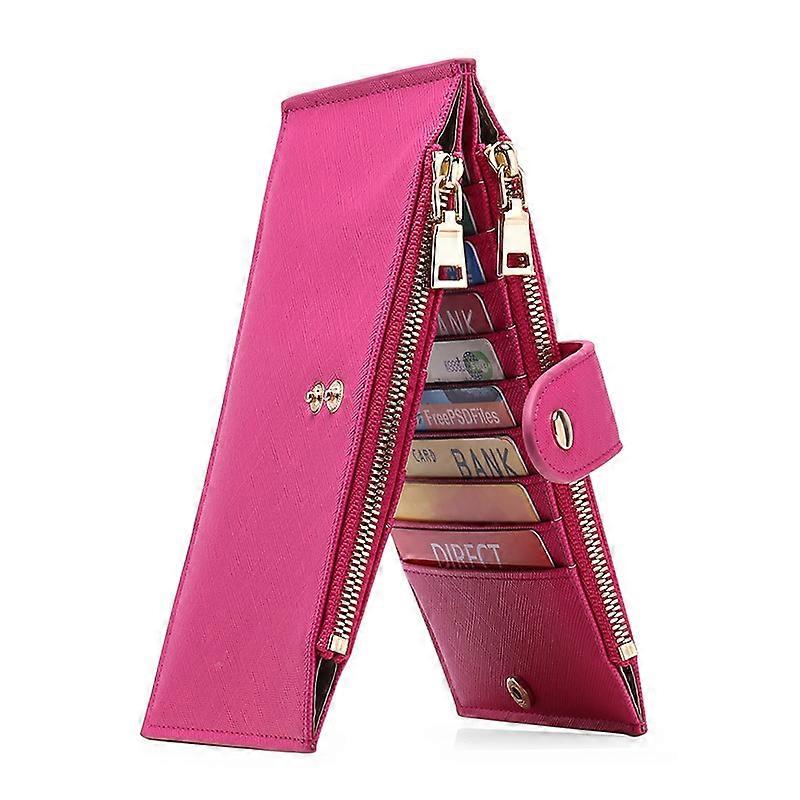 XIANRENGE Ladies Purse, Women's Wallet RFID Blocking Long Purse Women Credit Card Holder Zipper Coin Purse Phone Handbag, Rose Red