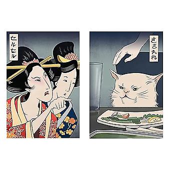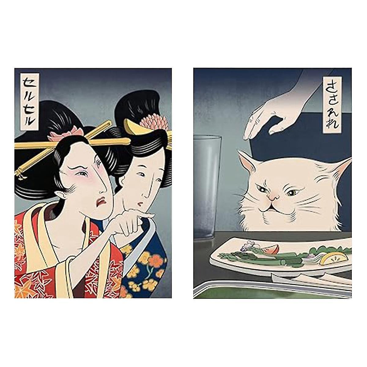 Xl-funny Japanese Woman Yelling At Cat, Canvas Painting Wall Art Poster Print For Home Decor