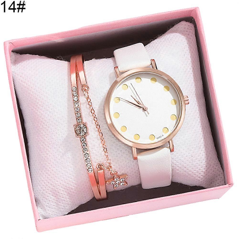 XR4435 White Dot Faux Leather Band Quartz Watch Star Design Bracelet Set