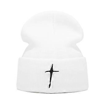 Y2K Gothic Embroidery Wool Acrylic Knitted Hat Women Beanie Winter Warm Beanies Men Casual Skullies Outdoor White