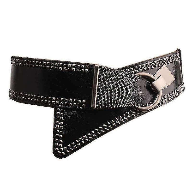 Yaju Women's Fashion Vintage Wide Elastic Waist Belt For Dresses Retro Stretch Belt With Rivets Studs1pcsblack