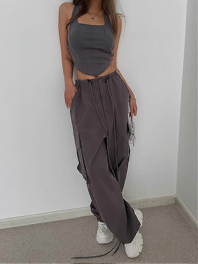 YOUGANG high quality Cool Girl American Retro Street High Street Spice Girl Crowdwork Pants Female Boyfriend Style Ins Pleated Leg Casual Pants