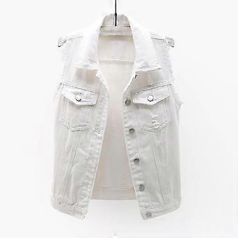 YOUGANG באיכות גבוהה מעיל אביב וסתיו לנשים צבע אחיד ז'קט ג'ינס ללא שרוולים