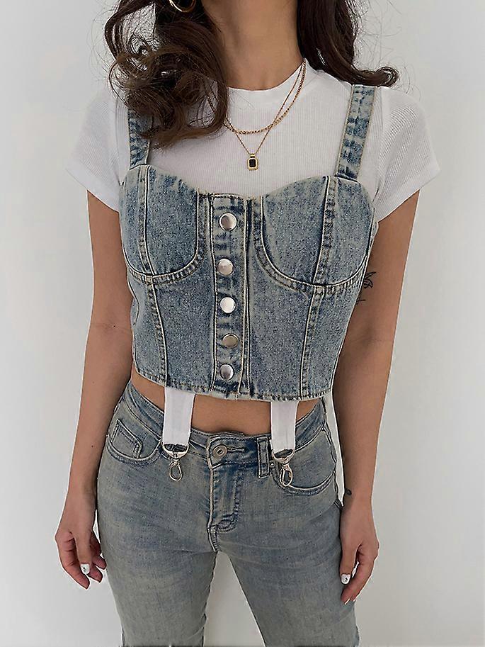 YOUGANG high quality Ins European And American Retro Cowboy Spice Sling Vest Women's Summer C- Bit Street Girl Navel Short Top Cool