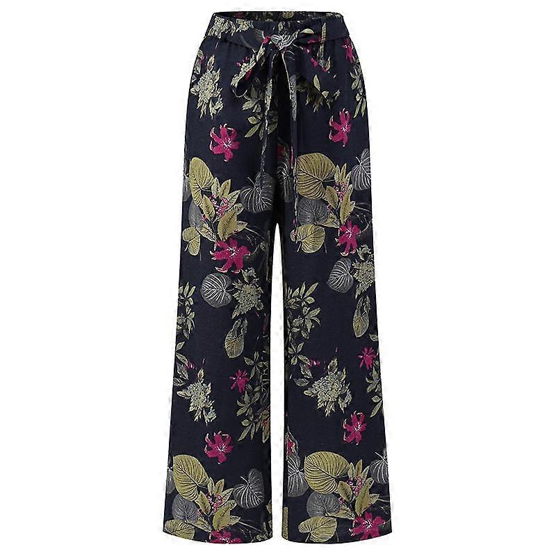 ZANZEA Floral Print Pants Womens High Waist Cotton Wide Leg Trousers