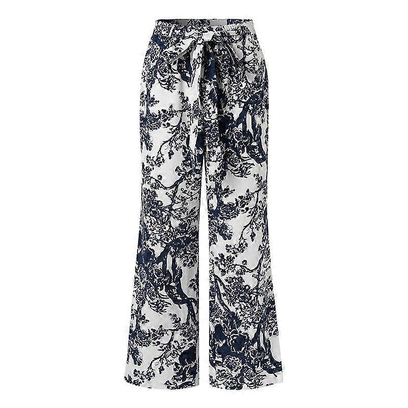 ZANZEA Womens Vintage Print Wide Leg Pants Summer Loose Casual Cotton Trousers