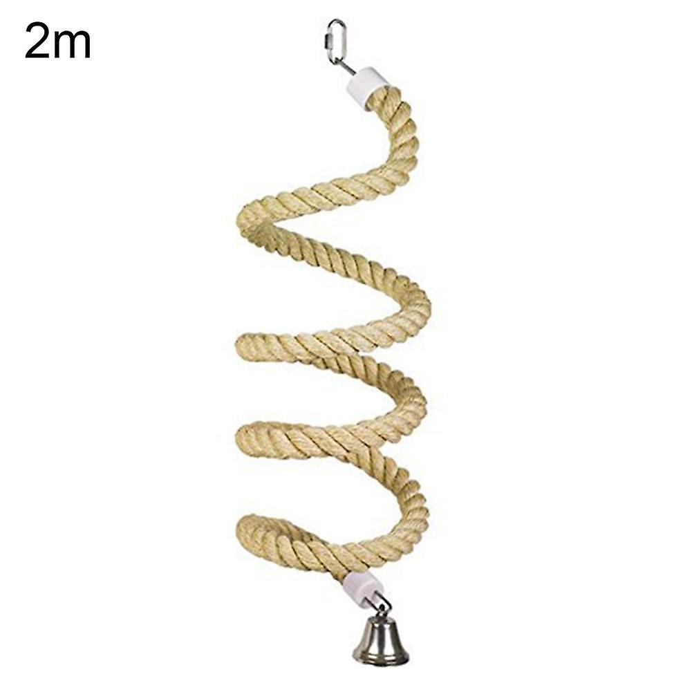 Pet Bird Parrot Bell Stand Perch Cotton Rope Chewing Bar Cage Hanging Swing Toy. Specifications: Spiral rope climbing and exercise birds help to develop coordination and balance. It can be used as a toy, a chewing stick, a standing and climbing toy, and the bell can easily attract the attention of the bird. Suitable for parrots, long-tailed parrots, cocktail parties and love birds to play and train. Item Name: Bird Toy Material: Metal/Cotton Rope Features: Hanging, Cage Decor, Chew Toy, Molar Total Length: 1m/39.37" (Approx.) Total Length: 1.5m/59.06" (Approx.) Total Length: 2m/78.74" (Approx.) Notes: Due to the light and screen setting difference, the item's color may be slightly different from the pictures. Please allow slight dimension difference due to different manual measurement. Package Includes: 1 x Bird Toy (Random Color)