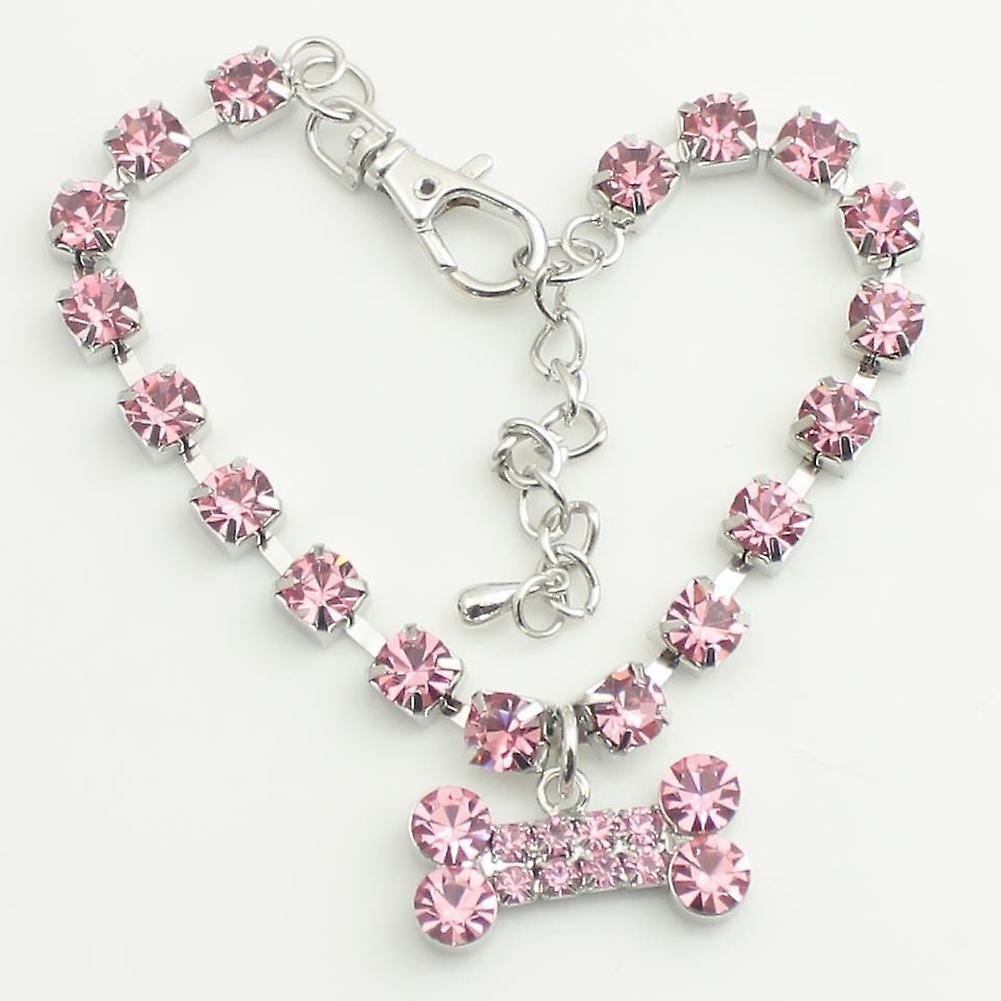 ZHOUBA Cute Bone Heart Pendant Rhinestone Decor Necklace Collar for Puppy Dog Cat Pet