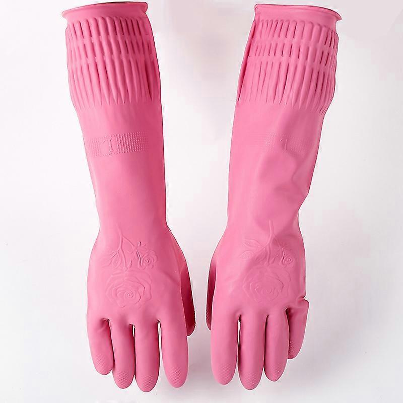 ZK-Rubber Waterproof Kitchen Dishwashing Cleaning Household Gloves 2 Pairs (Pink)
